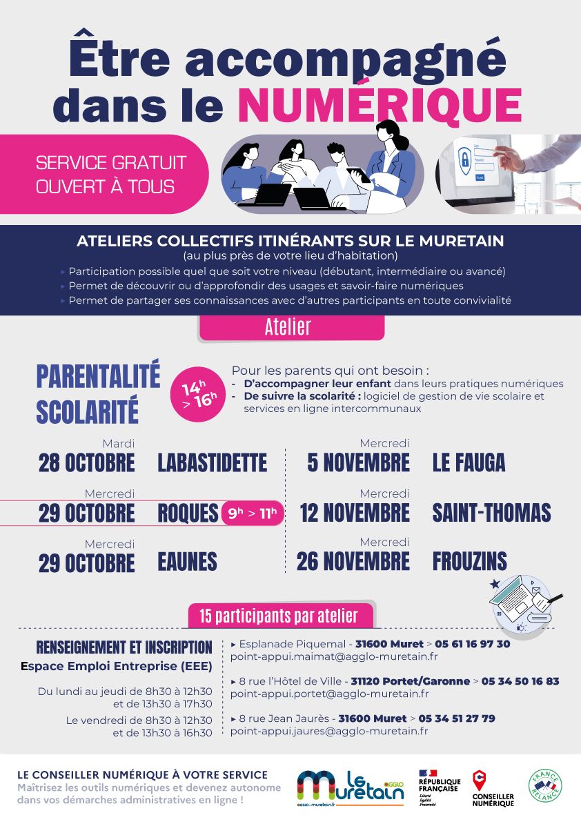 Pour y participer, nous vous remercions de vous inscrire auprès d’un espace emploi entreprise (EEE) du Muretain Agglo :