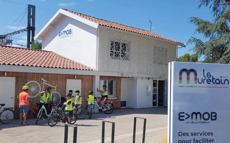 Le Muretain Agglo a décidé d'y implanter un espace pour répondre aux différentes problématiques liées aux déplacements autour, et vers la gare (Bus, vélo et train). Cet espace dénommé E-mob est un espace d'accueil dans lequel un grand nombre de services liés au vélos sont proposés (Atelier mécanique, apprentissage à la conduite, sécurité, pour tous les publics) et nouveauté, depuis le 1er septembre 2025, la possibilité de louer un vélo électrique à moindre coût.