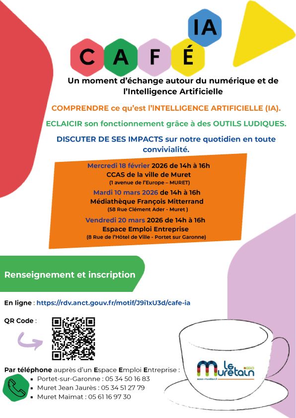 Le Café IA est un atelier collectif. Il est animé par les conseillers numériques du Muretain Agglo.
